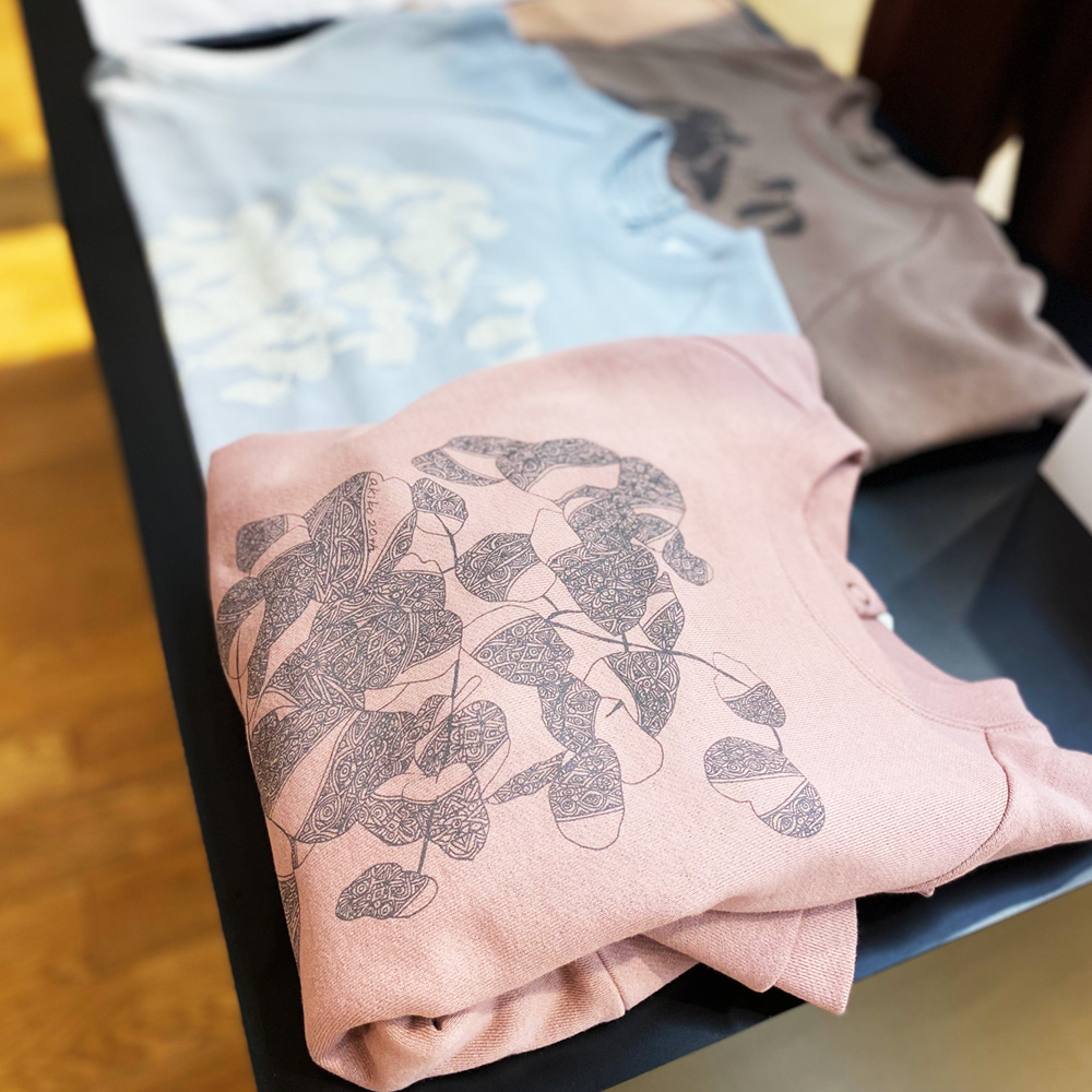 akiko20周年企画の一つで今回のLOISIRコラボで描き下ろしたユーカリの線描画に 「akiko 20th」を隠し文字で入れました。